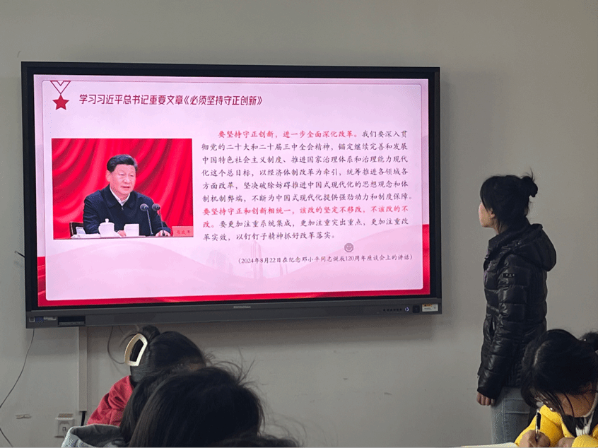 会议第五项,支部成员在殷芝玲同志的带领下学习了习近平总书记重要文章《必须坚持守正创新》。与会同志深刻意识到,守正创新是面对一切风险挑战时保持稳定发展的基石,要锚定国家发展的总目标,坚持守正与创新相统一,贯彻落实好各项改革工作。