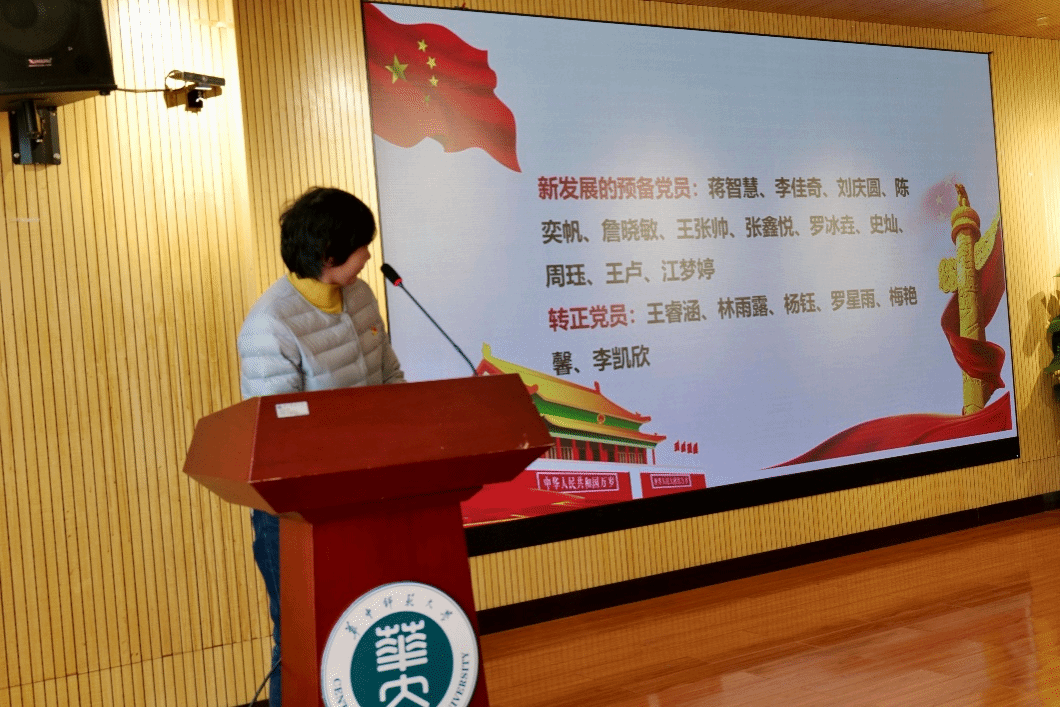 转正预备党员代表、情报学第一党支部王睿涵发言,表示要坚定理想信念,以高标准要求自己,向周围的优秀党员同志看齐,努力学习专业知识,认真履行党员义务和责任,牢记党的使命宗旨,积极投身于社会主义建设的实践之中,追求自身的全面提升。