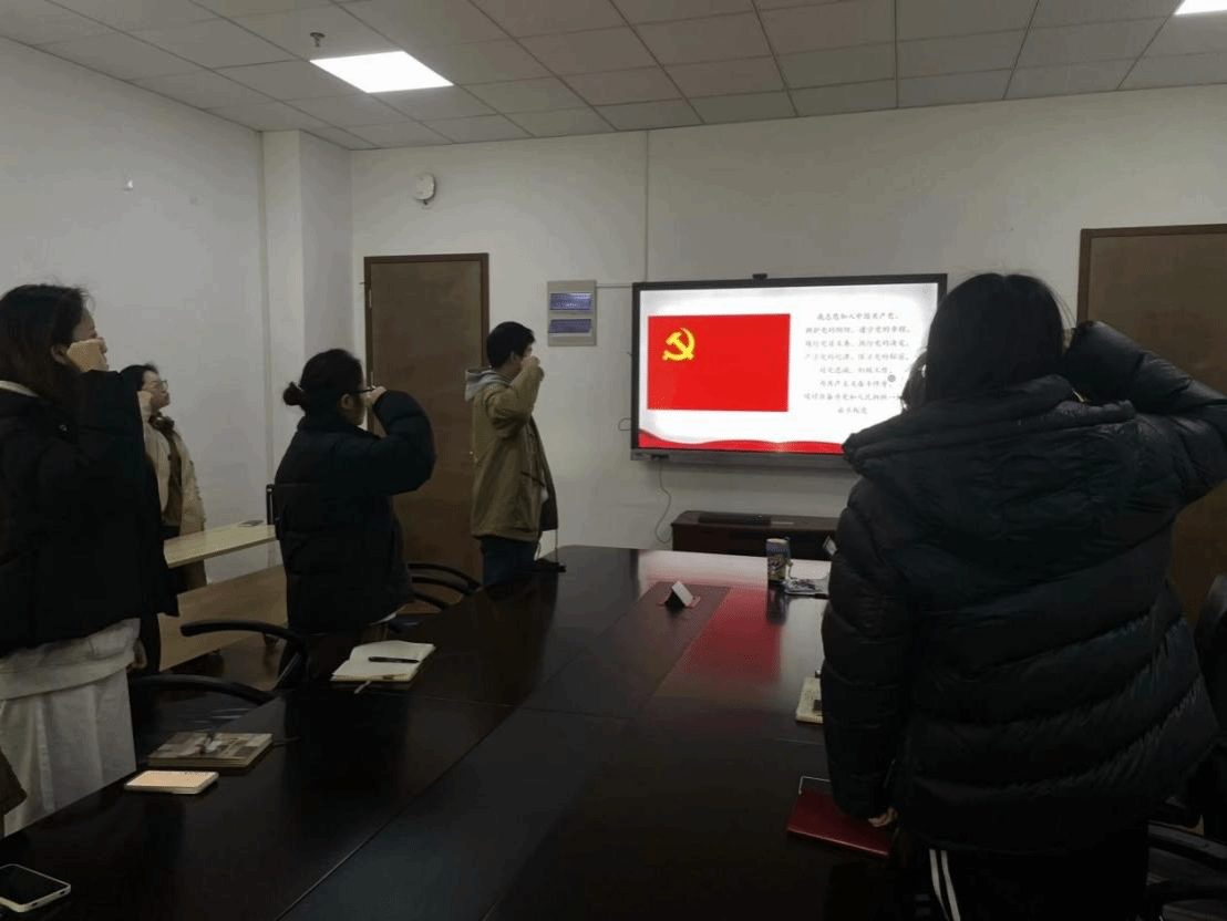 会议伊始,全体党员庄严肃立,重温入党誓词。史灿同志带领全体党员同志诵读《中国共产党章程》第三章“党的中央组织”部分,再次对党的全会代表大会的职权、要求等内容进行学习。