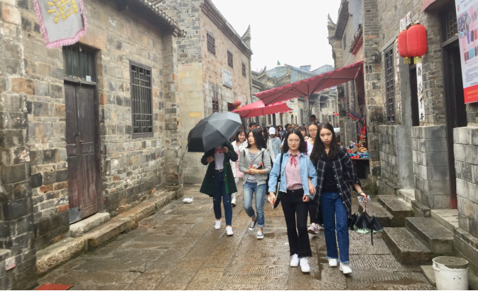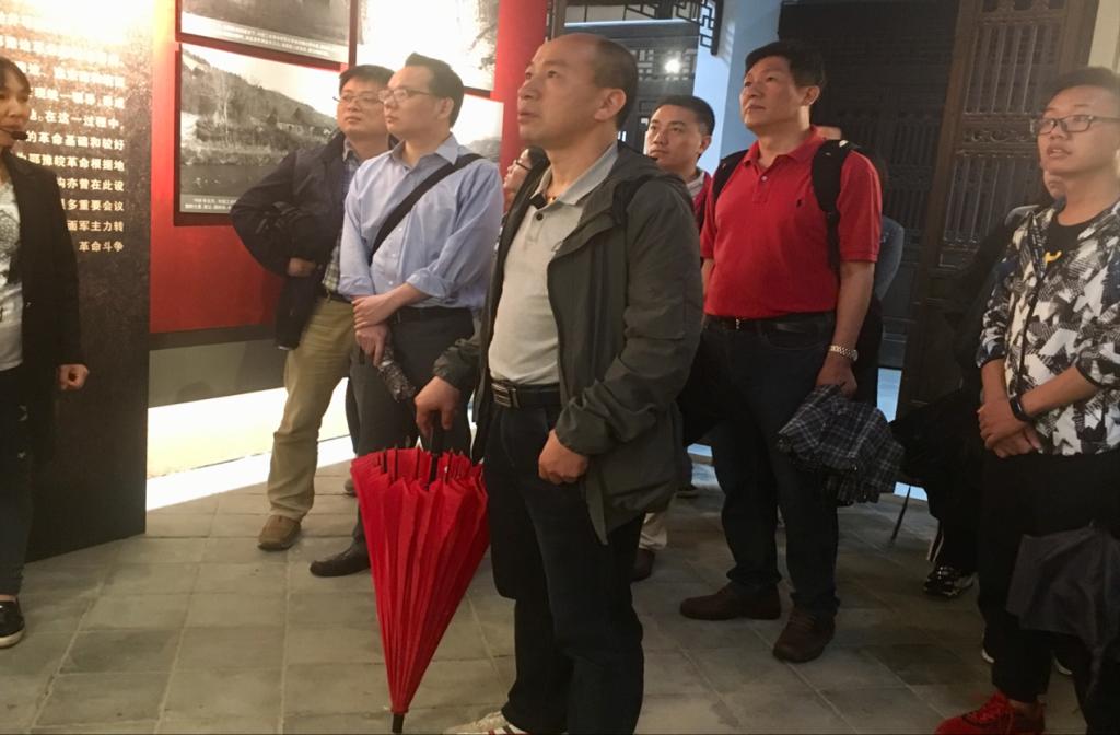 5月5日上午8点集中乘车前往红安,约两个半小时车程后到达红安县七里坪镇。天空下着阵雨,但党员同志们依旧风雨无阻,他们来到国家级重点文物保护单位“七里坪长胜街革命旧址群”,在教育基地工作人员的引导下依次参观革命旧址。