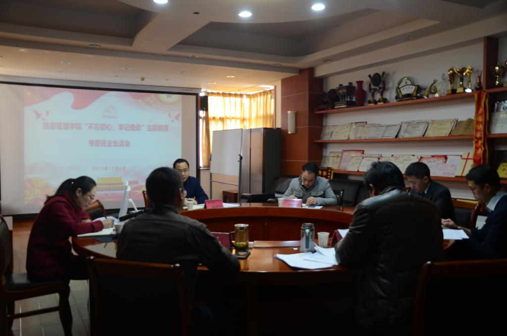 (通讯员 李静 卢瑞娜)根据学校党委《关于召开“不忘初心、牢记使命”主题教育专题民主生活会的通知》精神,我院于2019年12月9日上午10点在学院921会议室召开了主题教育专题民主生活会。院长李玉海、院党委副书记王涛、副院长卢新元、副院长曹高辉参加会议。学校主题教育巡回指导组第三组副组长连海江同志及许亨洪同志列席指导。会议由李玉海主持。