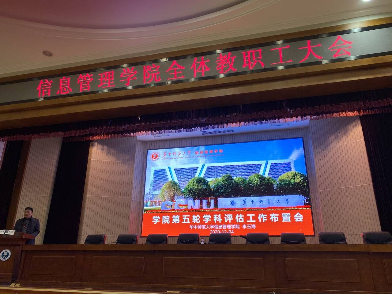 (通讯员 蒋可鸣)12月4日下午,信息管理学院在科学会堂一楼报告厅召开教职工大会,会议由信息管理学院院长李玉海主持,信息管理学院全体教职工参加。会议主要对学院参加的第五轮学科评估工作进行部署、集体学习《研究生导师指导行为准则》和《教育部关于加强博士生导师岗位管理的若干意见》。
