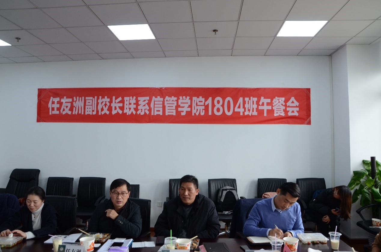 (通讯员 赵思捷 唐明月)12月23日中午,信息管理学院1804班于南湖综合楼10003会议室成功举办了午餐会,参与本次午餐会的有副校长兼副班主任任友洲、学院院长李玉海、分党委副书记王涛、副院长卢新元、学校办公室潘鑫老师、本科2018级辅导员卢旺以及1804班学生代表,此次午餐会由1804班班主任陈静老师主持。