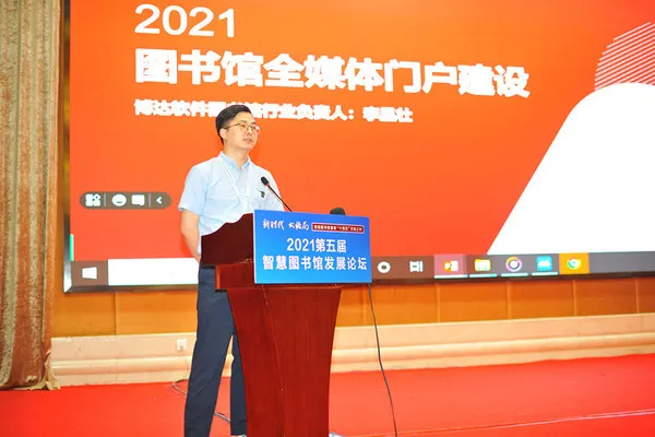 西安博达软件股份有限公司是全国首批“双软”认证企业,中国高等教育学会教育信息化分会理事单位,致力于为大型组织公开信息内容管理及智能服务提供解决方案。企业图书馆行业负责人李昱壮作《2021图书馆全媒体门户建设》的技术报告,向与会代表介绍了企业在图书馆读者服务场景、活动讲座场景、迎新场景、读者咨询场景、特色资源管理五大场景服务工作的解决方案和部分成功案例。