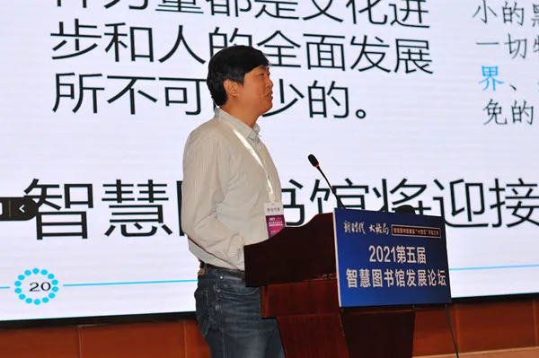 国家图书馆饶权馆长作《创新驱动 智慧赋能——全力推动智慧图书馆体系建设》的论坛主旨报告。