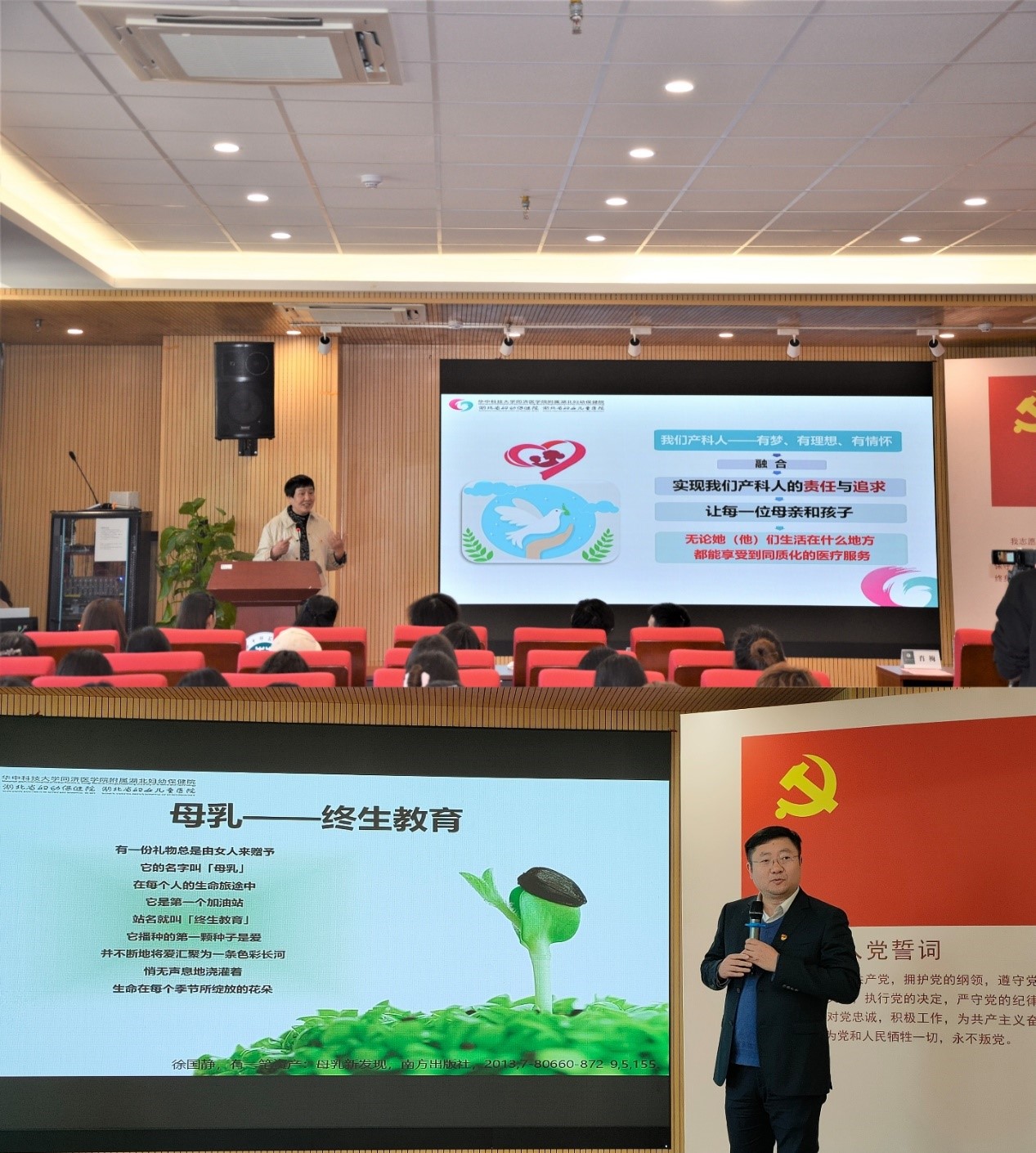 (通讯员 邓佳敏)为进一步践行“学党史、悟思想、办实事、开新局”精神,深化党史学习教育成效,推进“我为群众办实事”实践活动走深走实,提高教职工优生优育服务水平,落实国家生育政策及配套支持措施,华中师范大学信息管理学院信息资源管理系教工党支部与湖北省妇幼保健院产科第一、第二党支部之间搭建了合作和联谊的桥梁。2021年11月26日下午2:30,信息管理学院于南湖综合楼10001报告厅举办“党建领航 医校联谊”——健康宣讲进高校活动,该活动受到广泛关注,并得到了湖北电视台的报道。本次活动由信息管理学院党委副书记王涛主持,与会人员包括湖北省妇幼保健院产科首席专家肖梅(二级主任医师)、省妇幼保健院党委办公室主任柯建、产科第二党支部书记杜树国及其他10余名医护人员、华中师范大学医院王珺副院长、信息管理学院分党委领导班子、学院全体教职工、其他兄弟单位的适龄女性教职工以及全体研究生。