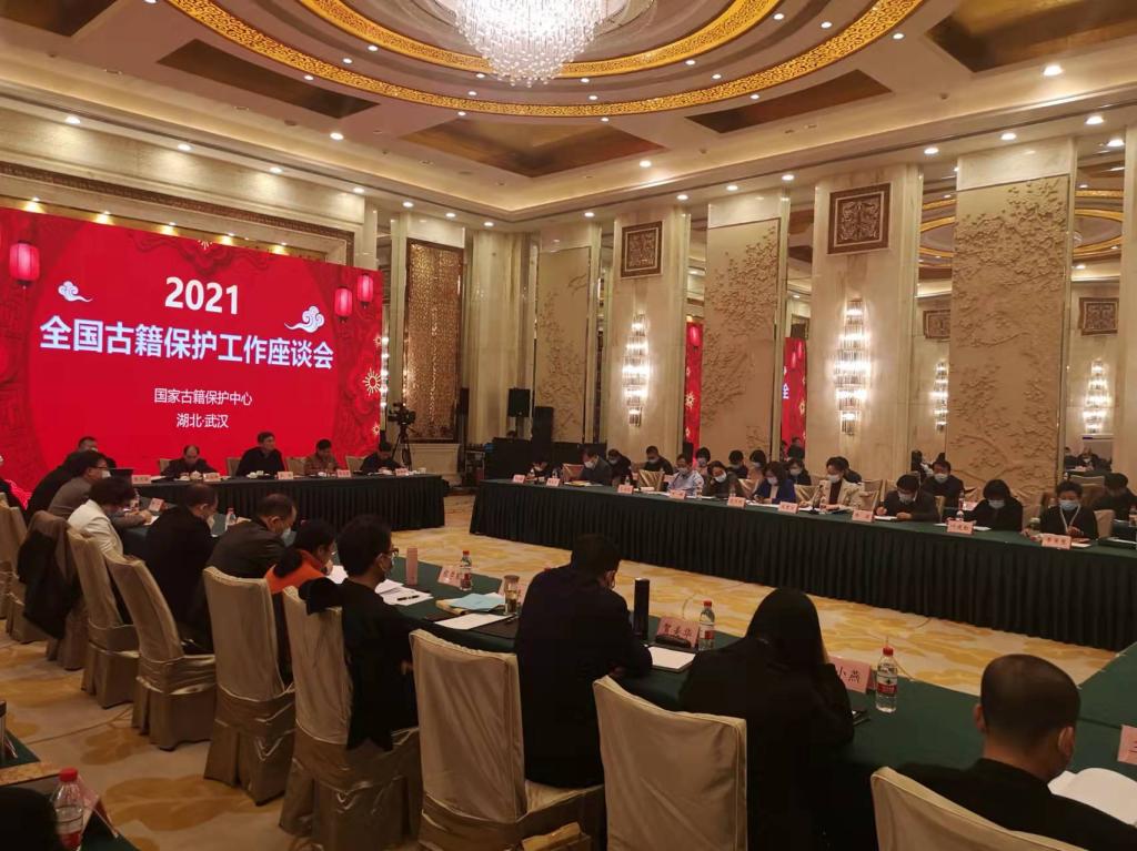 2021年12月8日,我院李玉海院长受邀出席了国家古籍保护中心在湖北省武汉市举办的2021年全国古籍保护工作座谈会。会议由国家图书馆副馆长、国家古籍保护中心副主任张志清研究员主持,省文旅厅厅长雷文洁到会致辞,文化和旅游部公共服务司一级巡视员陈彬斌宣读了《文化和旅游部关于公布第六批国家珍贵古籍名录和第六批全国古籍重点保护单位名单的通知》,国家图书馆馆长、国家古籍保护中心主任熊远明汇报了近年古籍保护进展情况,来自全国省市区的部分古籍保护单位代表在会上作了古籍保护工作交流。文化和旅游部党组成员、副部长张旭同志作总结讲话。