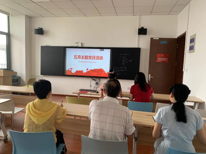2022年6月2日上午8点50分,华中师范大学信息管理学院行政与退休党支部于10006会议室召开了5月份党日活动,支部书记王丹同志主持会议并介绍了活动内容。