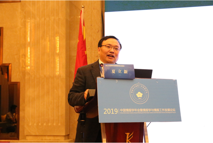 论坛以“新时代、新使命、新作为”为主题。特邀报告阶段,中国科学技术信息研究所戴国强所长介绍了推进竞跑阶段的创新情报研究。武汉大学信息管理学院李纲教授从场景的延伸的视角,分析了从科技情报到科技服务的转变。南京大学信息管理学院苏新宁教授强调了新时代情报学教育的使命和定位。军事科学院国防科技创新研究院栗琳研究员介绍了情报与智库的重要性及关系。夏立新解读了技术与数据双重驱动下的新时代情报学研究。