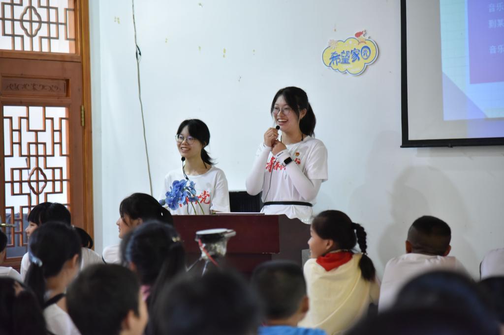 (通讯员 吴宇佳  摄影 宋茂玲为培养学生的节奏感、反应能力、记忆能力和创造力,加强美育教育,帮助学生舒缓心理压力,7月13日,华中师范大学追光实践队为赤壁市羊楼洞村的学生们带来了一节别开生面的心理疗愈类音乐课——对《孤勇者》进行身体打击乐创编。华中师范大学可鸣工作室指导老师蒋可鸣来到课堂,对本次心理疗愈课程进行指导。