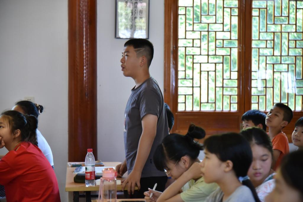 (通讯员 戴欣妍 摄影 宋茂玲)为深入贯彻习近平新时代中国特色社会主义思想,筑牢新时代青年理想信念之基,引领新时代青年立大志、明大德、成大才、担大任,7月10日上午,华中师范大学信息管理学院追光实践队开展思政课程,对赤壁市羊楼洞村的学生们进行理想信念教育。志愿者郑国杰担任思政课主讲老师。