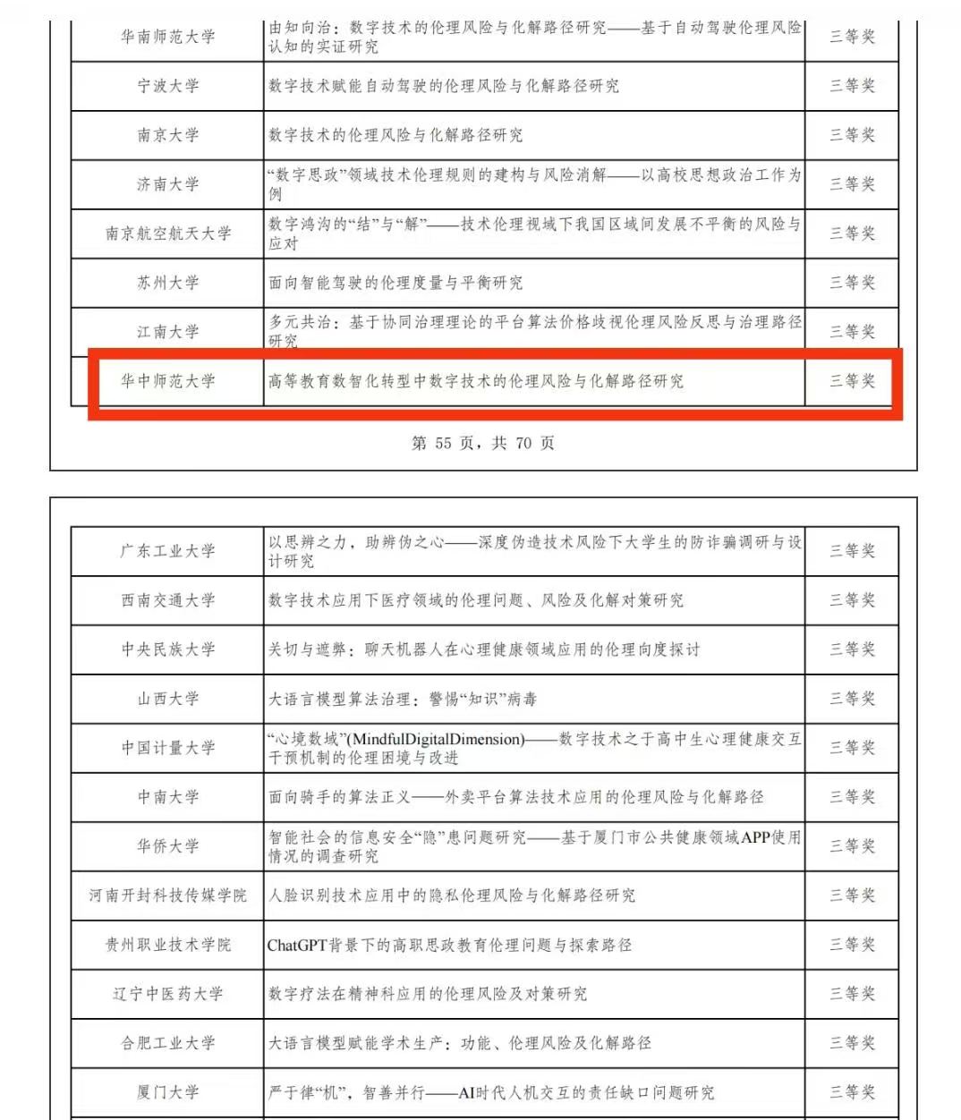我院“高等教育数智化转型中数字技术的伦理风险与化解路径的研究”入选“数字技术的伦理风险与化解路径的研究”题目三等奖拟获奖名单。