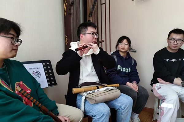 因金海峰非常幽默的个人风格,大家在愉悦轻松的氛围下进行交流。除了在笛箫技艺方面的交流,理事会成员还谈起了个人趣事,聊生活、学习,伴着悠悠笛声,缓解学习与工作压力。