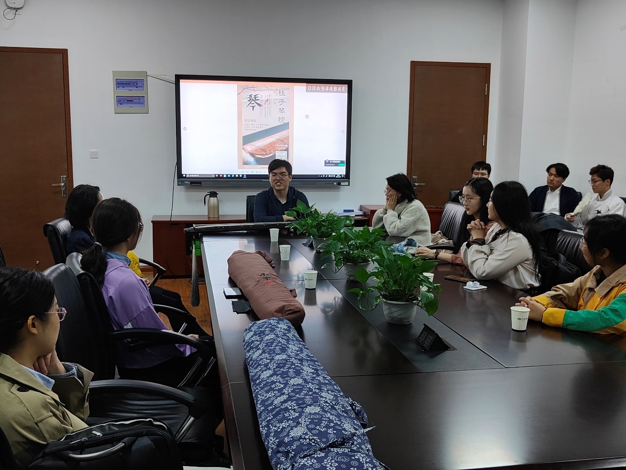 随后,丁钱铭交代关于社团日常练习的相关事宜及课程安排的介绍,并对新成员的古琴基础知识和掌握技巧程度进行一定了解。紧接着,大会进入新生自由发言环节,新成员积极发言,并讲述自己目前古琴的学习进度和各曲目的掌握情况,现场氛围活跃,新生们踊跃提出问题,会长及工作人员对成员们的疑惑之处进行指导和建议。在这里丁钱铭感慨道:“古琴是各乐器中相对容易入门的乐器,不拘泥于古板的教学形式,通俗易懂,零基础学员也能很快入门,是很适合各年龄段,尤其刚步入大学的学生学习,希望大家能在古琴协会的学习中让琴艺更上一层楼。”