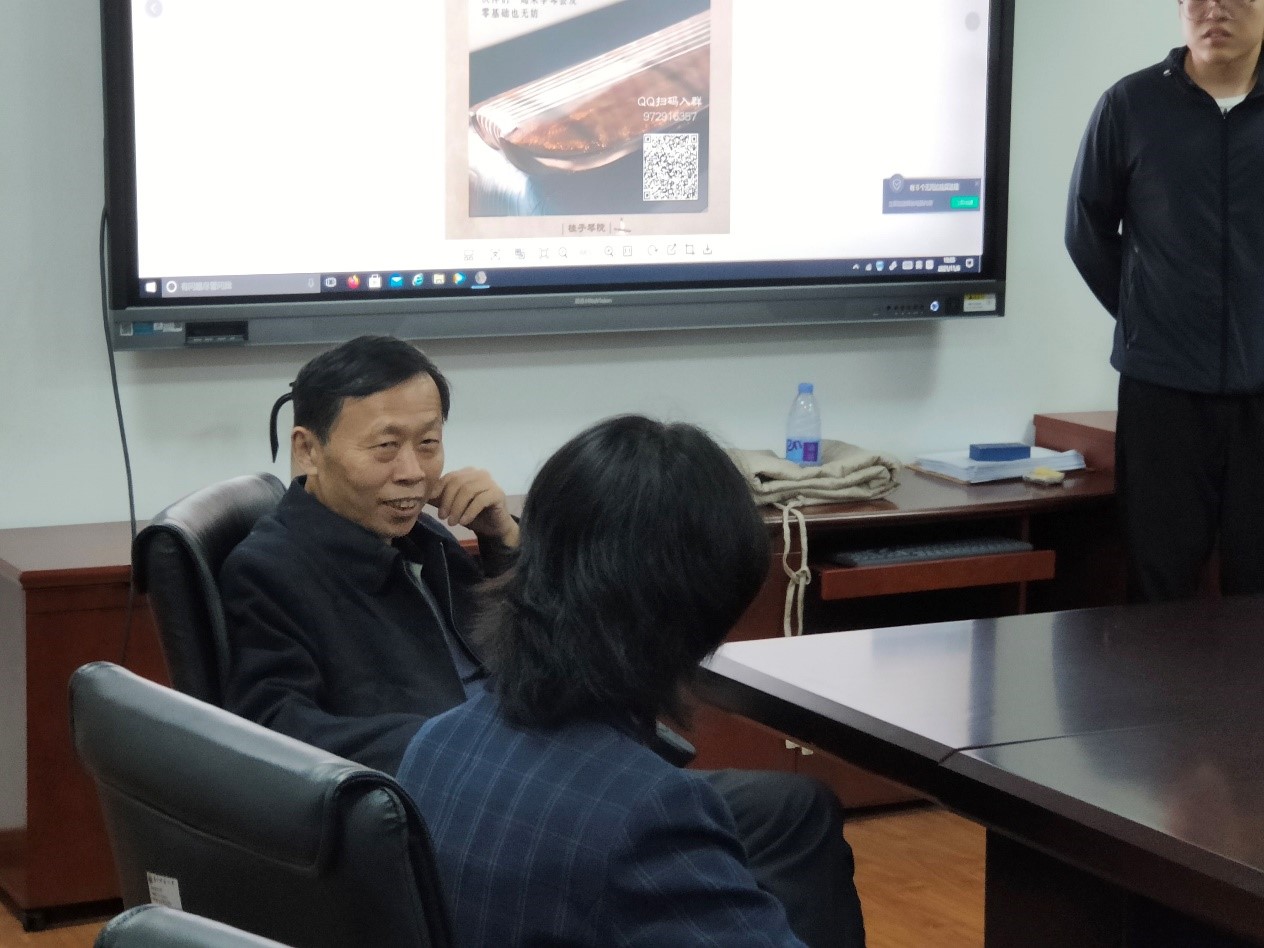 会议最后,丁钱铭及协会工作人员在现场对新生进行指法教导并让学员依次练习弹琴,学员间进行相互交流,经验分享。丁钱铭对新学员购琴意愿进行了解,并为学员提供有关琴的款式、种类的区分讲解,让学员对古琴的基础知识有了一定了解。