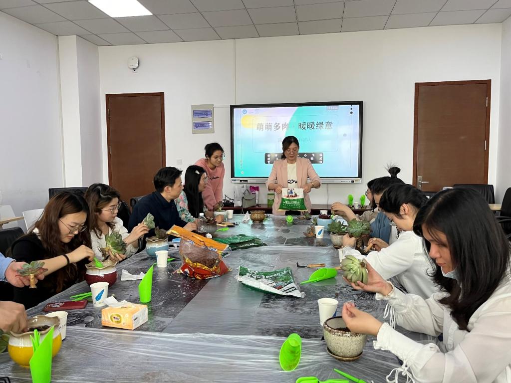 (通讯员:蒿玉如 摄影:敖丽娟)为缓解学校政工老师的工作和心理压力、增进教师间的了解与联系,5月18日下午,由校党委学生工作部、心理健康教育中心主办,信息管理学院e启心理健康教育工作站和可鸣思政工作室联合承办的“乐享时光心飞扬”政工干部体验式艺术疗愈坊之“萌萌多肉,暖暖绿意” 特色园艺减压活动顺利举行。