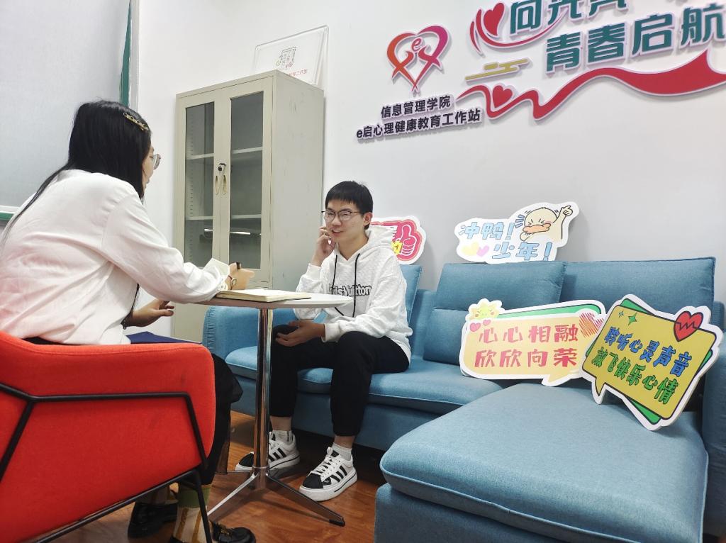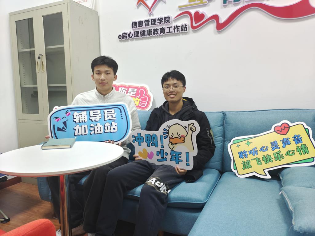 (通讯员 张柳萌 黄彦松 罗鸿奕)为了使辅导员更加深入了解22级新生学习生活情况,加强与新生的交流,帮助他们解决学习生活中的问题和困惑,以更加积极向上的姿态融入大学生活,由华中师范大学信息管理学院“e启心理健康教育工作站”和可鸣思政工作室主办的“辅导员加油站活动”由此开展。9月21日,第一阶段活动如期而至,辅导员蒋可鸣老师和兼职辅导员胡凯华老师同2022级新生刘浩然、黄绍博等同学展开了积极愉快的交流。