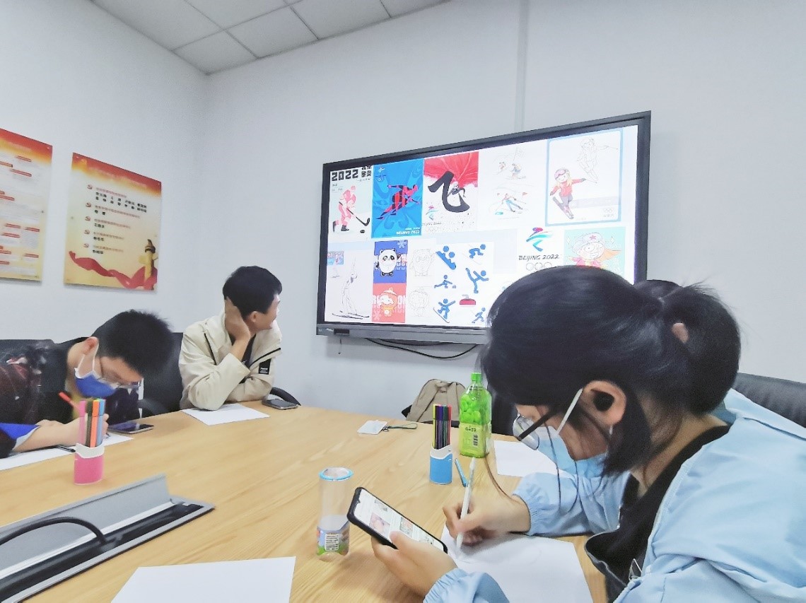 同学们对各组作品评分后颁发奖品。张瑞对本次活动进行总结,北京冬奥会不仅是一场体育盛会,更是一场文化盛宴,讲述着中国故事,传递出中国自信,体现了中国人民的饱满热情和不懈努力,作为新时代青年,我们要接续奋斗,担当起新时代的责任与使命,贯彻习总书记的讲话精神,与时代同频共振,共谱新时代蓝图。