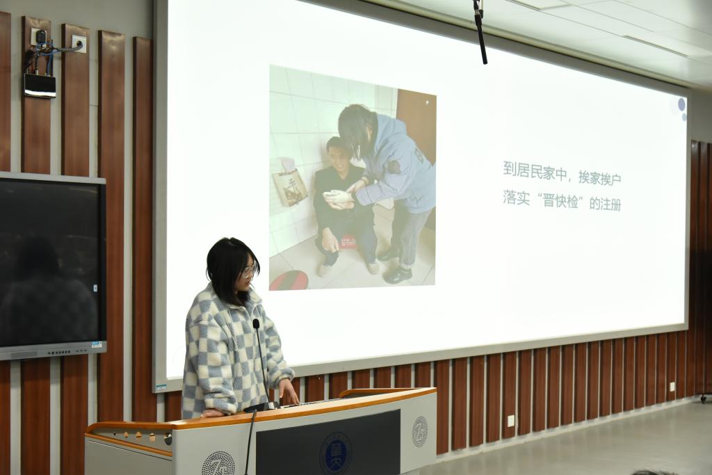 华大青年讯(通讯员 吴宇佳 黄承轩)2月27日晚,信息管理学院21级全体同学在南湖综合楼319教室进行新学期第一次晚点名。在晚点名的后半部分,信管学院21级的三位同学赵慧芳、李佳愔、傅俊乔依次进行了关于寒假社会实践活动的事迹分享,就寒假社会实践活动内容与个人感想进行讲述。本次分享会由信管学院青年志愿者协会会长周艳主持。