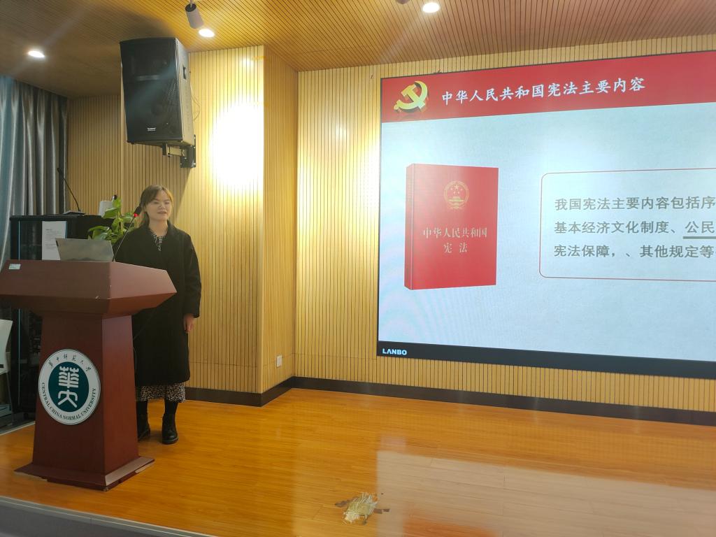 科普环节结束后,20级信资一班班长赵闺丽围绕宪法宣传给大家上了一堂生动有趣的主题团课,课程还设置了有奖抢答环节。在赵闺丽认真细致的讲解和抢答互动过程中,同学们更明确了作为公民的基本权利和基本义务,更深入了解了宪法确立的重大制度和原则,并将在学习生活中将其内化于心、外化于行。