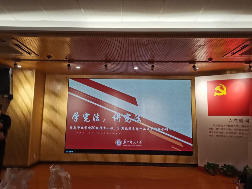 (通讯员 李昌柔)2021年12月11日上午,信息管理学院信资一班与2101班团支部于N10001举行了以“学宪法,讲宪法”为主题的十二月团日活动。两班全体同学参与活动,20级信资一班团支书王海龙主持。全员共同深入学习宣传习近平法治思想、大力弘扬宪法精神。