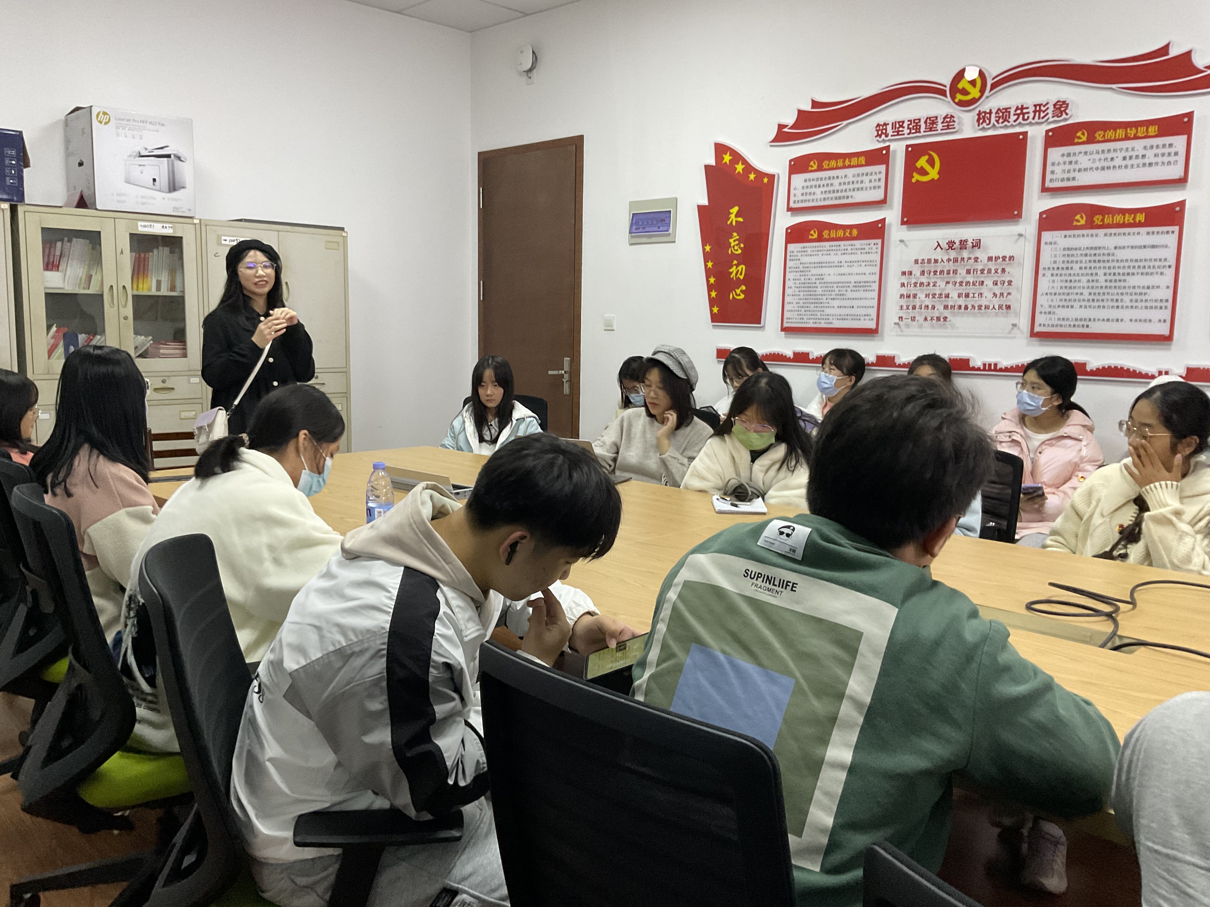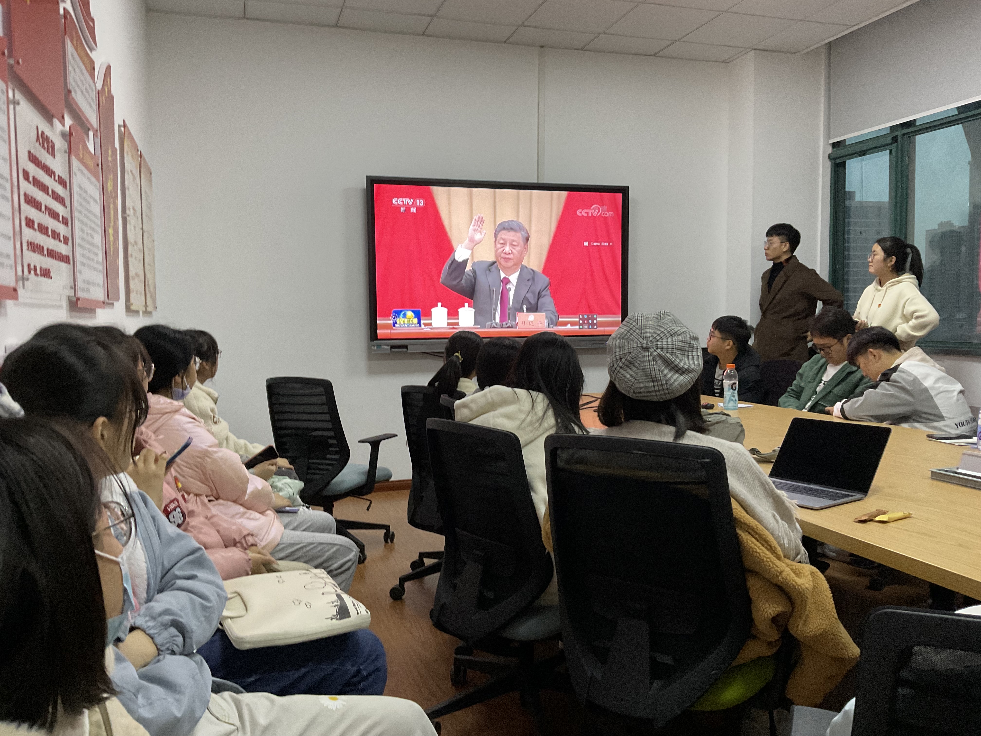 活动进行第三项,主持人带领大家学习十九届六中全会上习近平总书记的讲话。总书记的讲话内容深刻,掷地有声,为迷茫的同学扫清心理上的阴霾,让我们对前途,未来有了更加清晰的认识,更远大的奋斗目标。