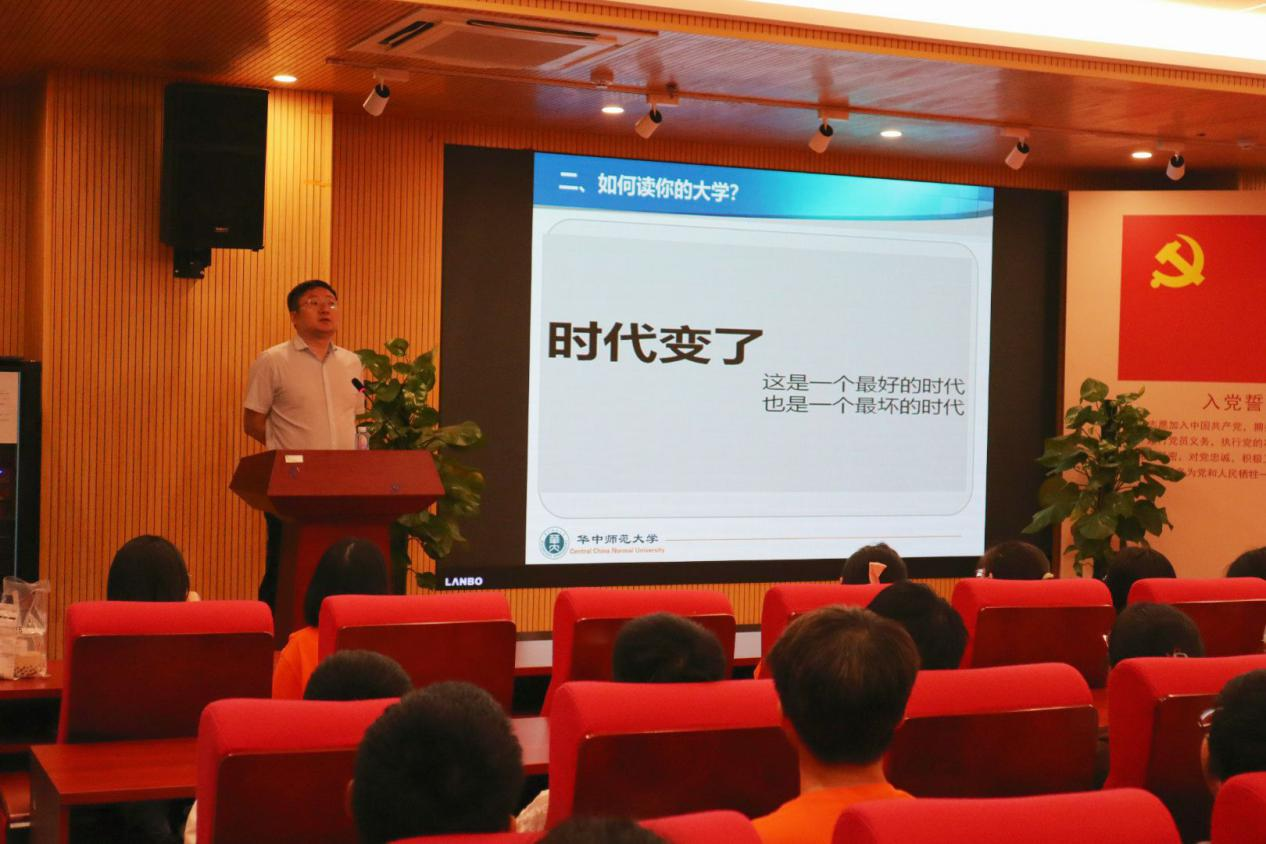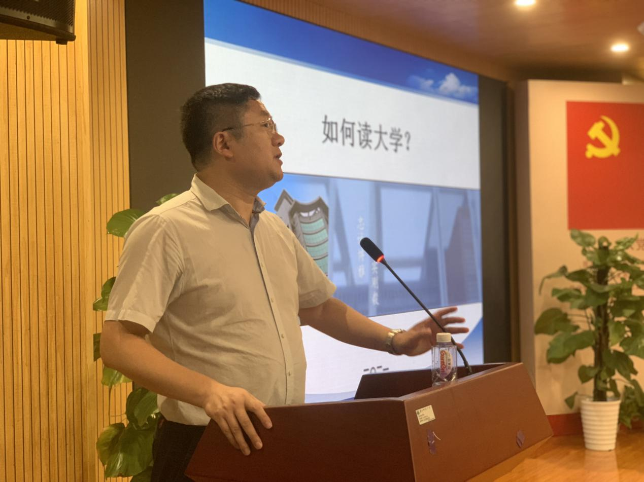 (通讯员 李蓓 郑欣怡)9月24日晚上,在我院2021级本科新生开学典礼仪式结束后,我院面向2021级本科新生的《新生研讨课》第一课开讲,本次课由我院党委书记王雨露老师主讲,主题是“如何读大学”,引导2021级新生迅速适应大学,拥抱大学,做大学的新主人!