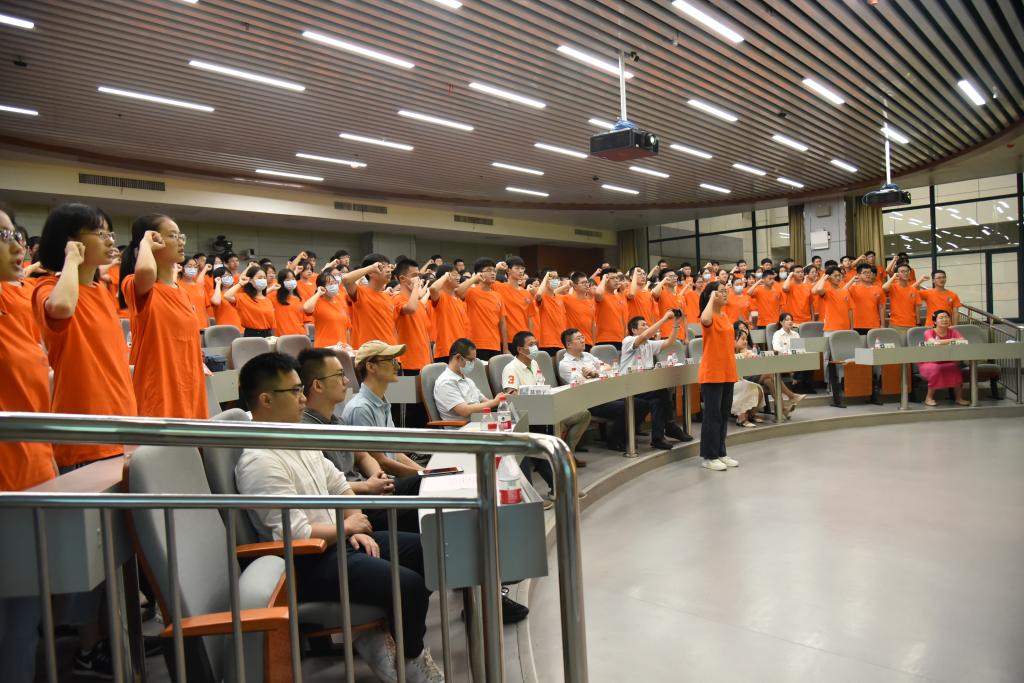 在“百年红色鸿鹄志,昂首笃信少年行”寄信仪式中,同学们将写给四年后自己的一封信放进信箱中,并由辅导员肖丽霞封箱保存。大家将言语心声化作一纸文字,将一封封书信投入信箱中,鸿鹄少年,子衿芳华。相信四年后毕业之际,当大家再次打开信封,重温自己笔下的温度,有怀念之情,也有青春的那份感动。仪式结束后,全体同学们面向院旗,佩戴院徽,起立宣誓,迸发蓬勃力量。