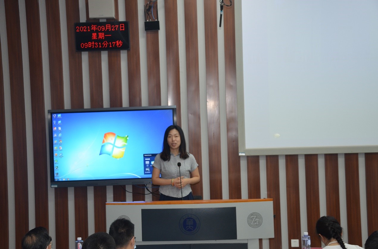 典礼第九项,信息管理学院青年教师张敏老师自我介绍。作为信管院的新任教师,张敏老师借开学典礼的契机,与各位同学见面,分享了自己在数据治理、数字人文与情报学方向的研究内容,希望在未来能够在信管院与大家共同学习进步。