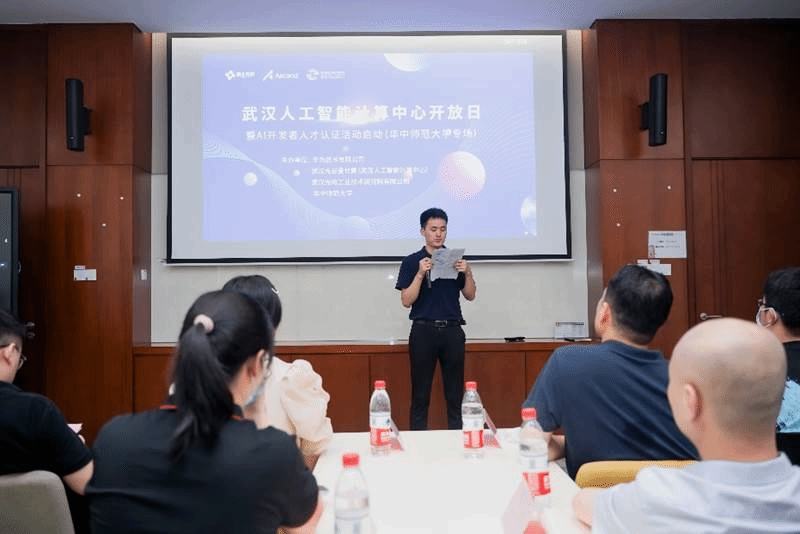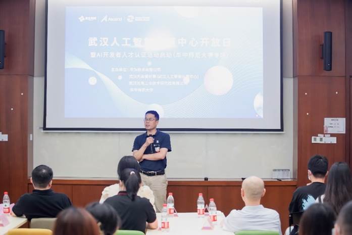6日上午9点30,AI工程师技能认证培训开班仪式于华为武汉研究所举行。武汉昇腾生态创新中心高校代表王响对各位领导以及同学们的到来表示热烈欢迎,并由请华中师范大学信息管理学院卢新元副院长发表致辞。卢院长表示,当前以人工智能为代表的新一代信息技术快速发展,成为推动我国经济高质量发展的重要引擎。华中师范大学信息管理学院和计算机学院在人才培养和科学研究等工作取得良好成果,而武汉人工智能计算中心是打造面向千行百业的公共算力服务平台、行业应用创新孵化平台、产业聚合发展平台、科技创新和人才的发展平台,面向当前国家战略发展的AI领军人才培养工作,双方共同肩负着重要使命。卢院长讲到,此次“人工智能工程师技术培训”,必将进一步促进产学研协同育人体系的作用发挥,帮助学校紧密结合产业需求,提升学生实践创新能力。我院将积极为“AI工程师”人才培养工作提供全力保障,同时希望产业与学校加强合作,整合力量、共促发展。