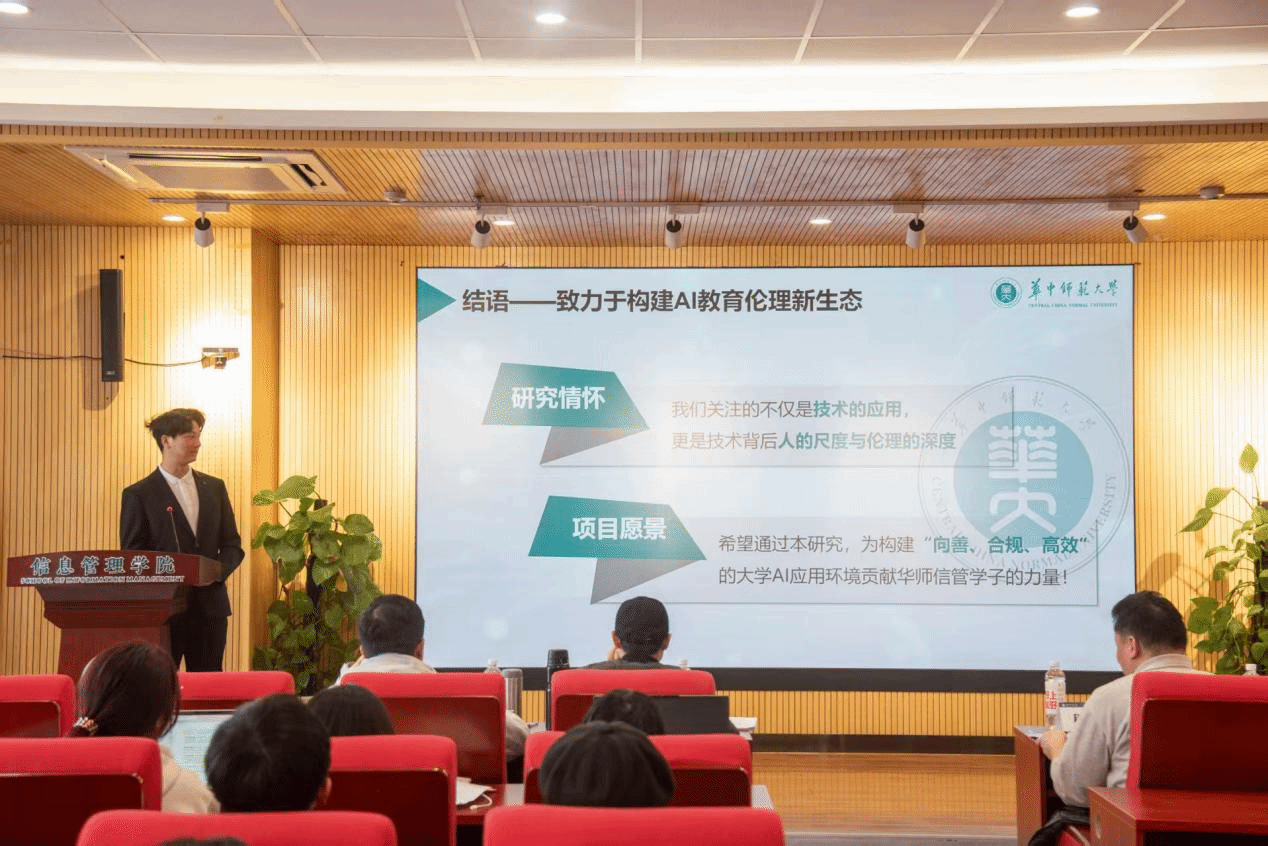 葛欣艳团队“基于AI与知识图谱的国风服饰叙事化智能定制平台研发与应用”项目提出通过构建知识图谱构建文化、AI智能工厂+专家审核、社交功能让用户参与文化共创等体系解决市场传统汉服供应不足问题。贾明慧团队“分级分类视角下老年人AI素养教育需求类型与策略研究”项目直面老年人存在数字鸿沟问题,采用“问卷访谈+参与式观察”方法,选题前瞻性、方法交叉创新、内容衔接国家战略。汤俊杰团队“大学生AI使用伦理风险影响因素及其规制策略研究”项目发现AI伦理风险问题日益突出,采用混合研究方法,结合扎根理论和结构方程模型开展深入研究。