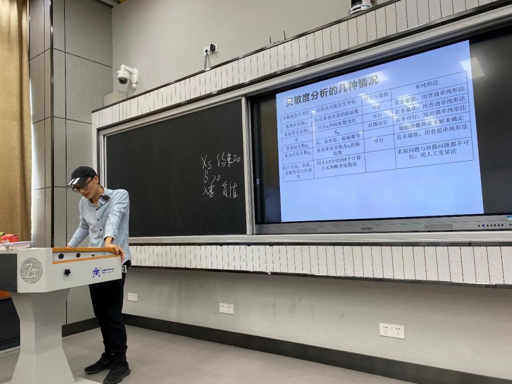 10月18日14:00-15:40,信息管理与信息系统系组织部分教师在N221教室开展了公开课教学活动,此次公开课王光超老师讲授了《管理运筹学》第二章第四节“灵敏度分析”和第三章第一节“运输问题”的相关内容。王老师首先进行前情行回顾,接着展开了相关内容的教学,期间运用微助教、公众号等新媒体进行教学和辅助教学,课堂内容饱满,素材丰富,课程思政素材充足。整个教学过程,王老师以问题为导向,能循循善诱,深入浅出地与学生互动。课后,参与旁听的信息管理与信息系统系的陈静、邢云菲、高明运和罗宏远四位老师就课堂教学技巧进行了讨论和分享。