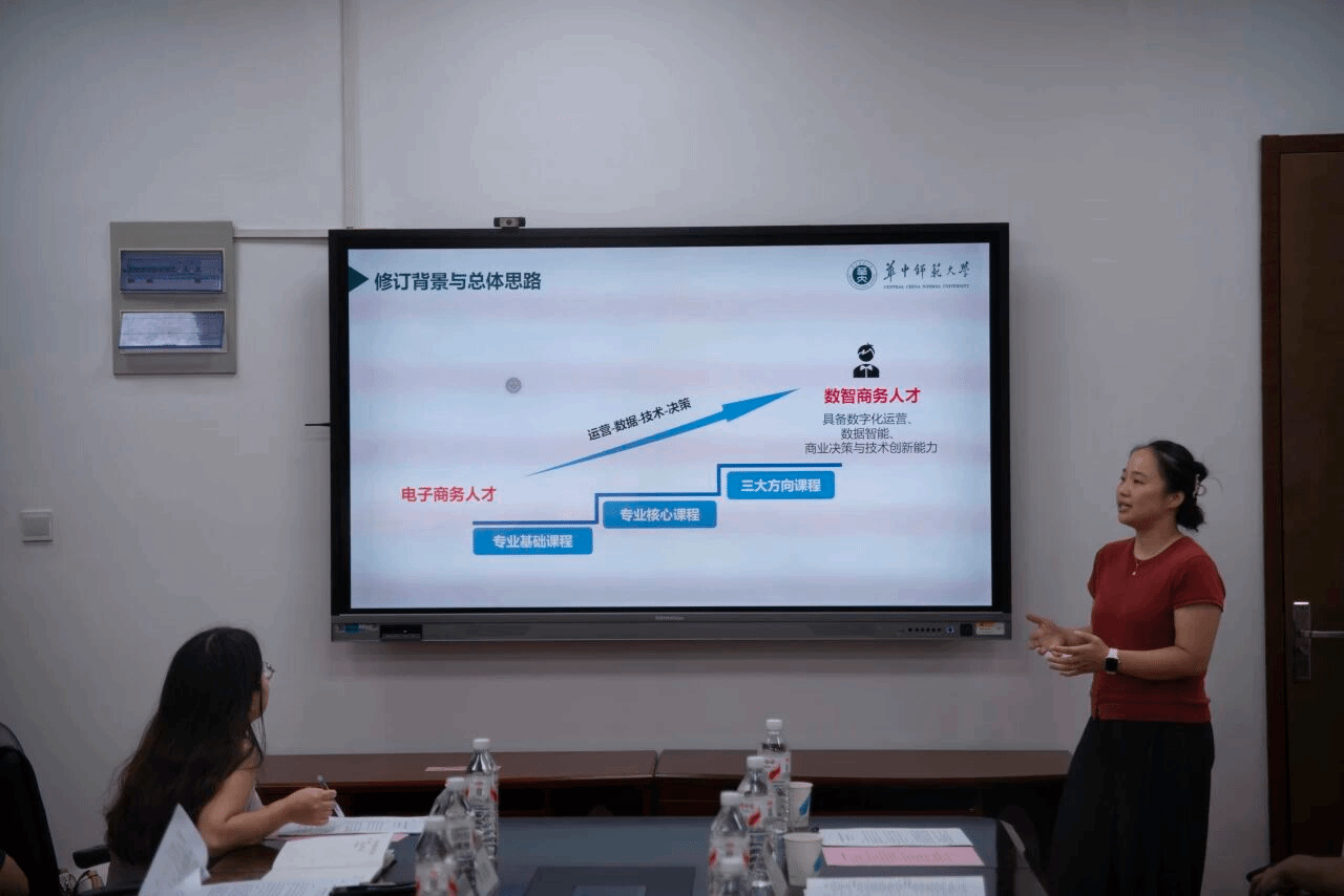 (通讯员 王翔霆 车昀泽)10月9日下午,华中师范大学信息管理学院在南湖综合楼N10003会议室召开电子商务专业2025级人才培养方案修订校企座谈会。武汉聚福会、湖北省跨境电商产教联盟、洪山电商协会及多家企业代表受邀参会,学院领导、电子商务系教师代表共同出席,政企校三方聚焦电商专业人才培养定位、课程体系优化、实践合作模式三大核心议题,展开深度研讨。