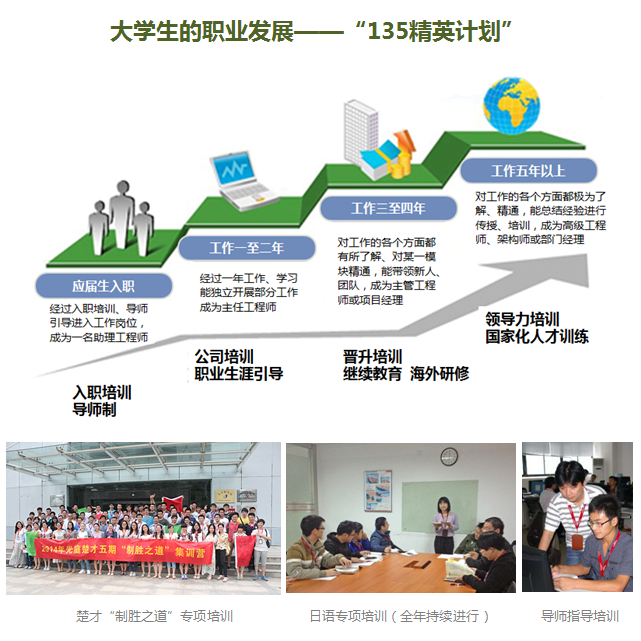 光庭关注员工的发展。目前有ODC技术专项培训,楚才致胜专项培训,1-3-5精英专项培训,英语/日语专项培训。