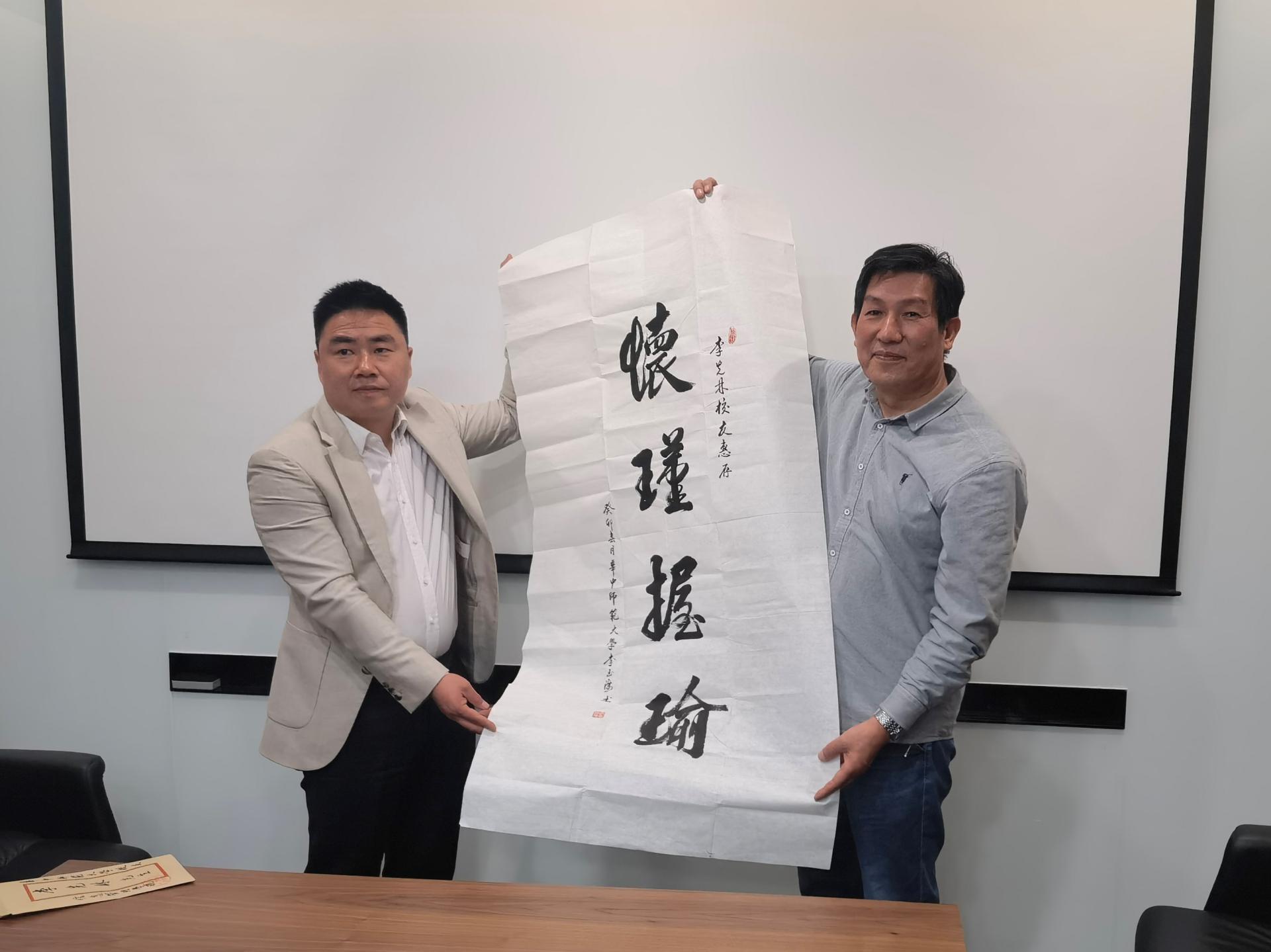 在深圳市乐其网络科技有限公司,03校友周阳、唐小婉热情接待了李玉海一行,他们详细介绍了公司从初创型小企业向定位全球中高端市场、员工近500人的国家高新技术企业发展的创业历程,并带着大家参观了公司。李玉海高度评价了周阳夫妇敢为人先的创业精神,并赠送“惊才风逸”书法作品以示勉励,他对周阳校友能多次返校无偿指导帮助学弟学妹的行为表示感谢,并希望今后进一步加强联系,促进校企联动共赢。