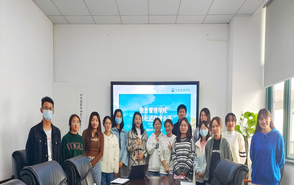 (通讯员 冯文静)10月28号中午,信息管理学院十月社团联席会议于南湖综合楼10063会议室举行。参与本次会议的人员有信息管理学院团委书记肖丽霞,信息管理学院社团联合部全体成员和各挂靠社团主要负责人。