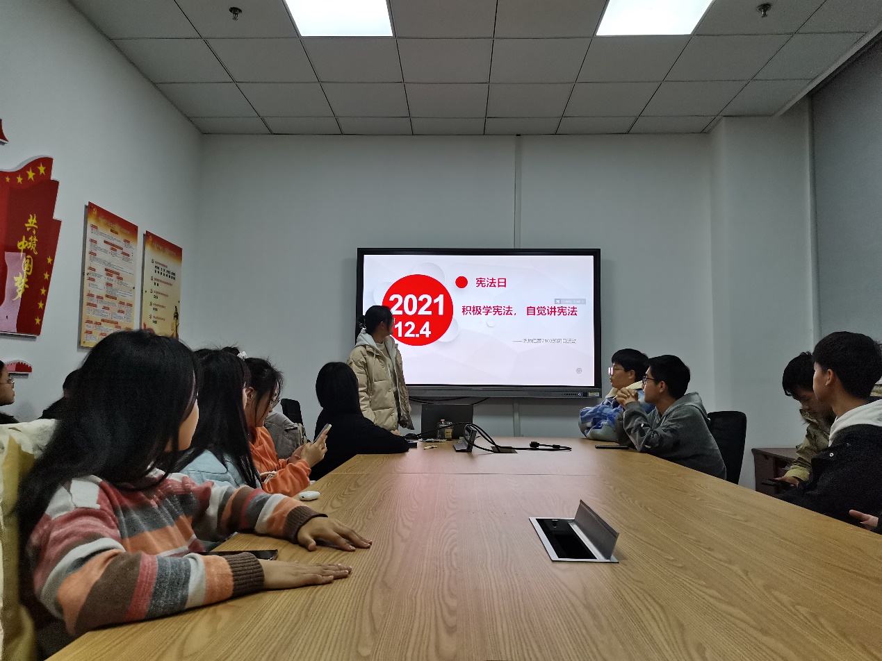 活动伊始,张瑞同学组织同学们观看宪法普及视频,进行了宪法知识学习,学习宪法的诞生与发展、宪法在日常生活中应用场景以及宪法对于社会稳定发展的重要性并由李德龙同学为同学们详细介绍了宪法的内涵。同学们认真听讲,深入了解宪法,体会宪法与生活的息息相关。