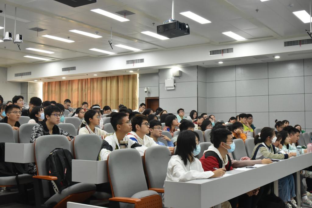 随后,党波涛为同学们动情追溯了刘升佳教授的事迹,其因为一次外出工作,在极寒的神农架深山冻伤了腿,必须截肢。即便如此,他仍年复一年、风雨无阻地乘轮椅去为同学们讲课授业,直至一生的尽头。“蜡炬成灰泪始干”,他描述到,被这位已故老教授的事迹触动心灵后,他自发地去对其家人进行采访,宣传刘升佳勤劳治学的一生,获得了较好的反响。他由此提到,或许某个微小的事情,就是一个伟大的事迹等待发掘。党波涛强调,记者与通讯员都需要具有新闻的四种判断能力:新闻的敏感性,观察的灵敏性,思想的深刻性,政治的敏锐性。要做具备综合素质的新时代新闻人。
