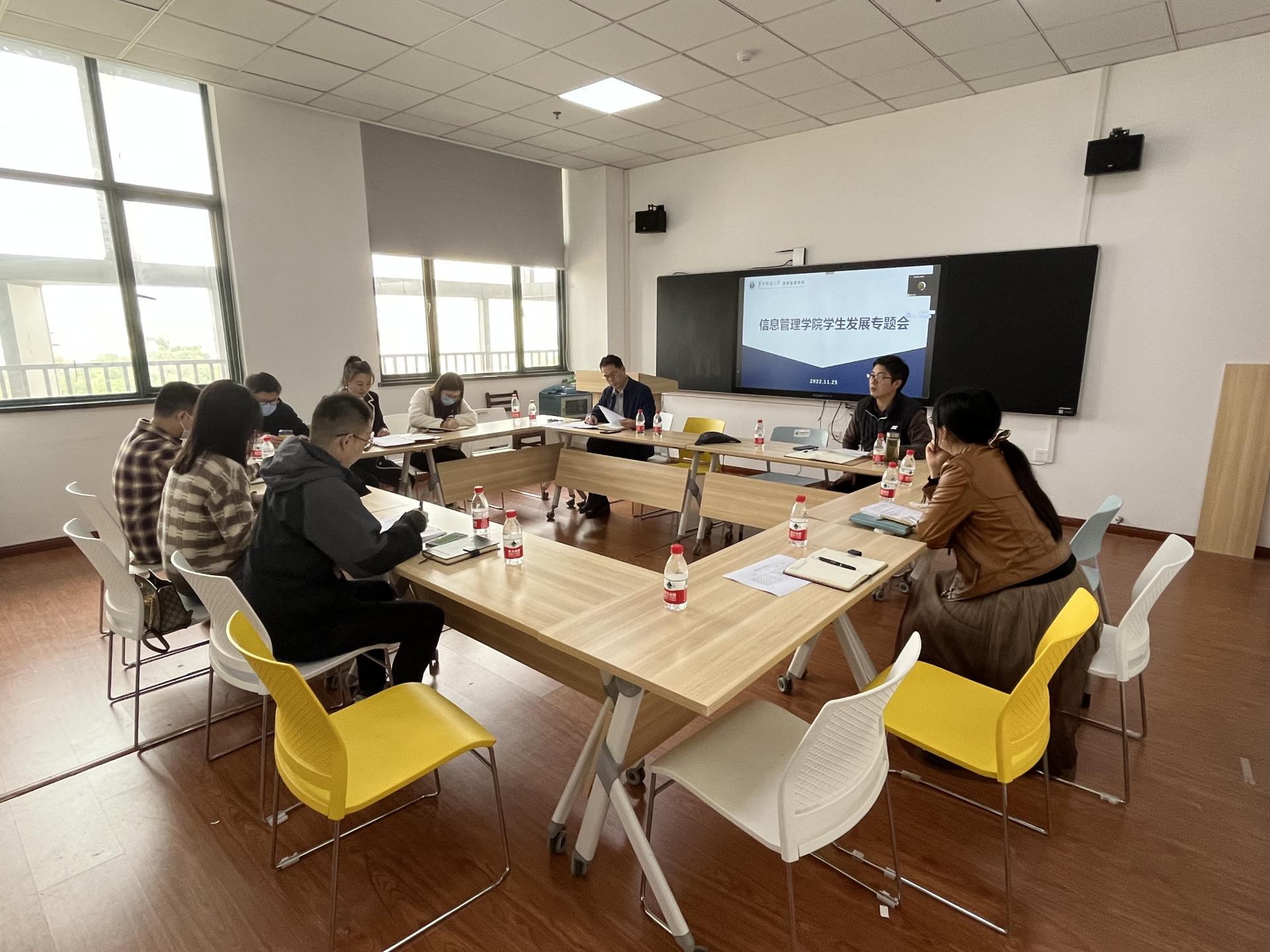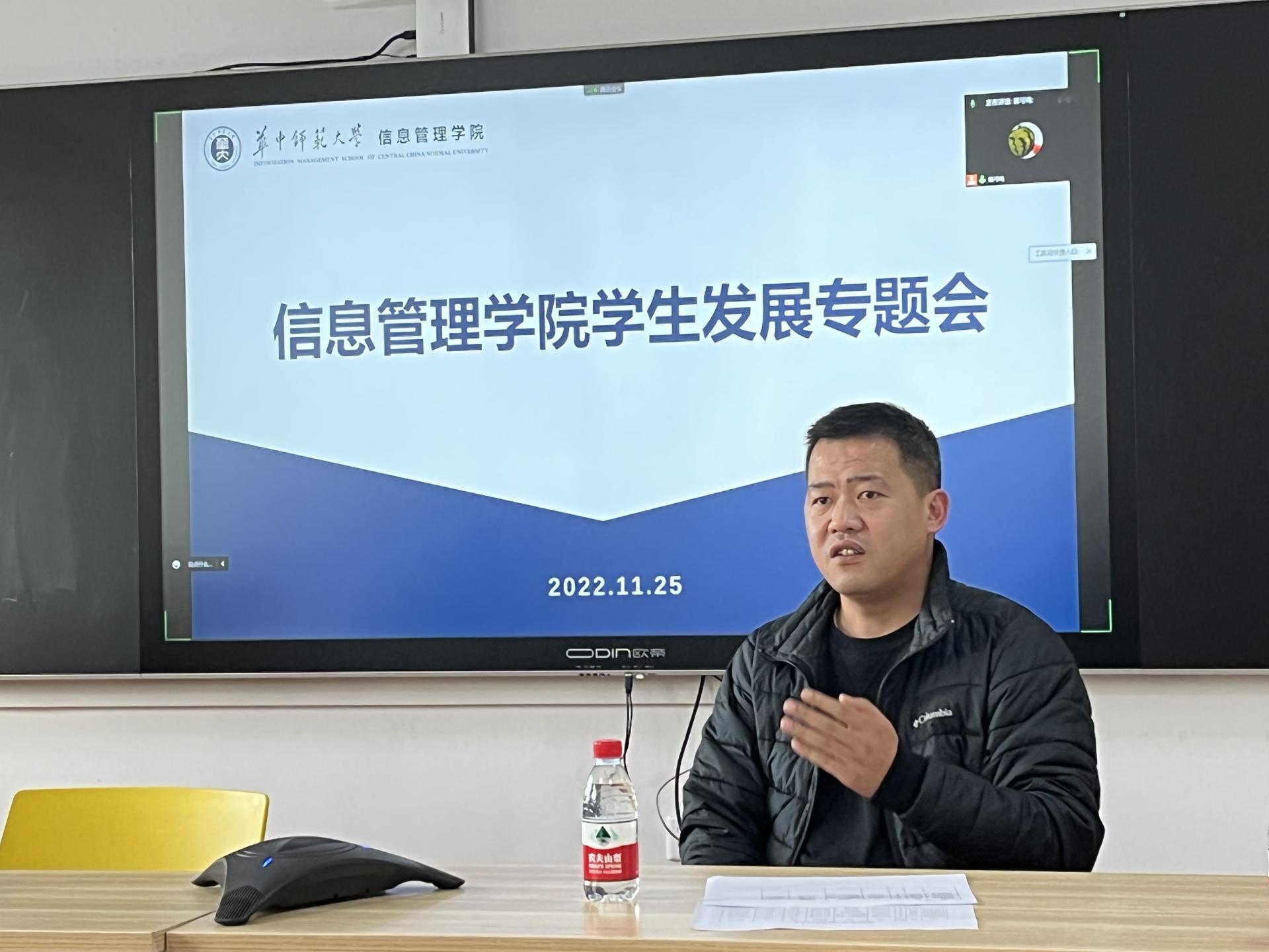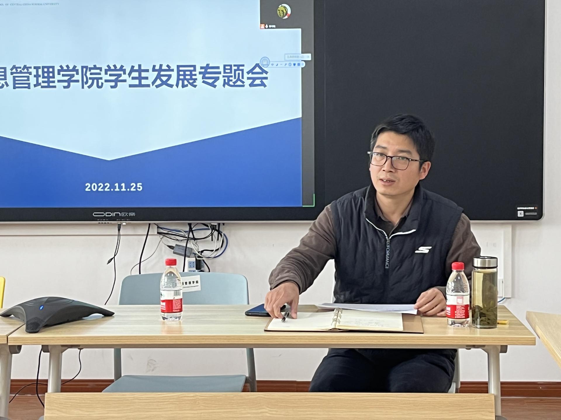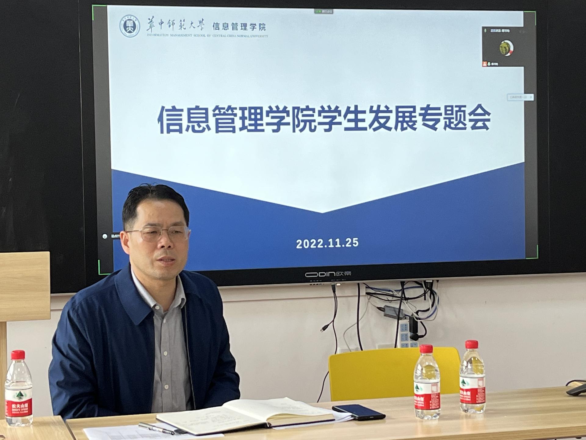 (通讯员 胡凯华 蒋可鸣)为落实学院立德树人的根本任务,助力学生成长,优化工作效果,信息管理学院于11月25日在10006研讨室召开了促进学生更好发展专题会。学院教学副院长卢新元,科研副院长曹高辉,各系系主任,2021级、2022级全体班主任、辅导员老师以线上线下相结合的方式参加此次专题会。本次会议由学院党委副书记王涛主持。