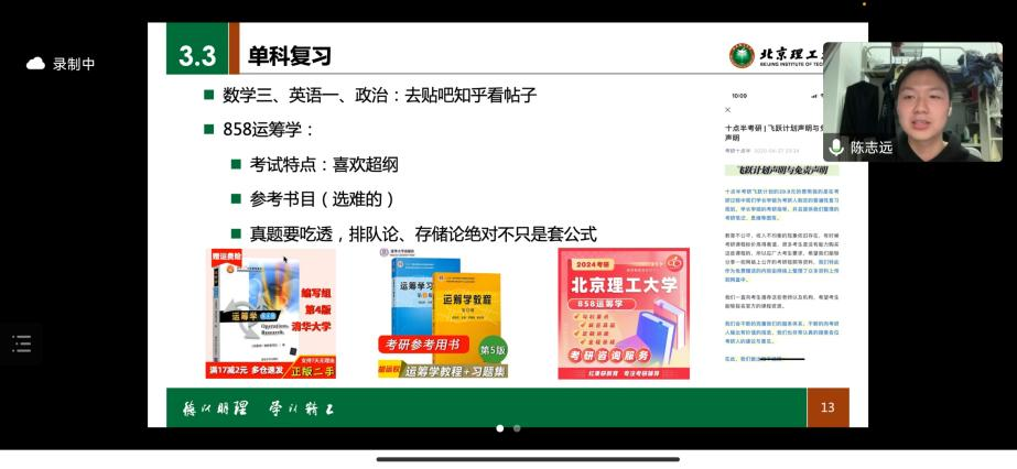(通讯员 苏治霖)为加强同学们对考研的认识和了解,进一步明确考研规划,挖掘自身潜能,营造良好的考研学习氛围,信息管理学院本科生2020级面向有考研意向的同学开展考研经验分享会,该会致力于增强学生对于考研的认识,明确考研方向,为学生考研奠定良好的基础。