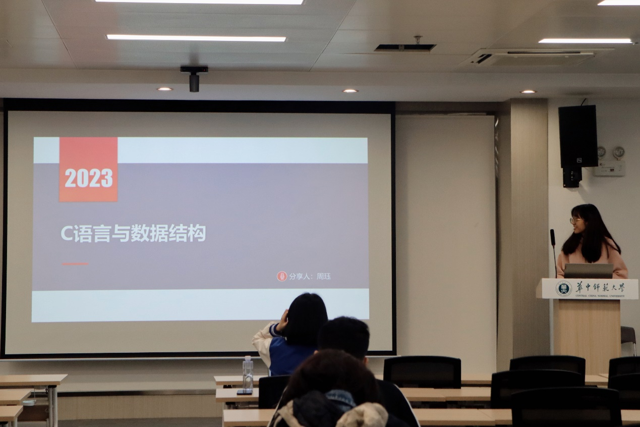 最后,信息管理学院优秀学生周珏向同学们分享了数据结构学科的学习经验,周珏同学强调数据结构是一门十分重要的学科,其知识点影响了后续大二、大三学科的学习。她认为数据结构同C语言一样是一门实践学科,需要大量的自我练习。她建议大一同学要敢于求教,多向老师提问,同时多加实践,进行程序的编写。同时也向同学们分享了她学习时所用的优秀在线教学资源,希望能够对大一同学能有所帮助。