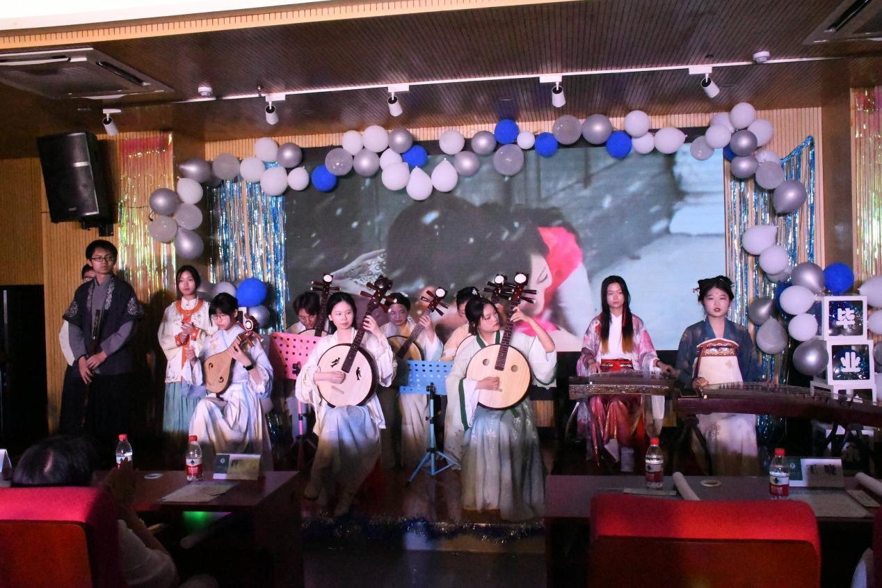 中场通过小游戏的互动,现场的气氛更加热烈欢乐。第二篇章也在辅导员老师们精心准备的视频中拉开序幕,她们在华师校园各个角落录下了珍贵的《勇气大爆发》MV视频,为毕业学子走上征程加油鼓劲。1904班师生合唱的《汉阳门花园》,一曲武汉方言的长歌勾起了大家的回忆,让大家都陶醉在歌声里;接着,由娄策群教授以及阮艺协会带来的乐器合奏《此生不换》的表演精彩无比,充分展示了信管师生的多才多艺;《我爱科研》朗诵中朗诵者声情并茂,字正腔圆,抑扬顿挫间讲述了自己科研路上的成就与挫折,铿锵有力的话语表达了自己坚定科研、奉献国家的热忱。